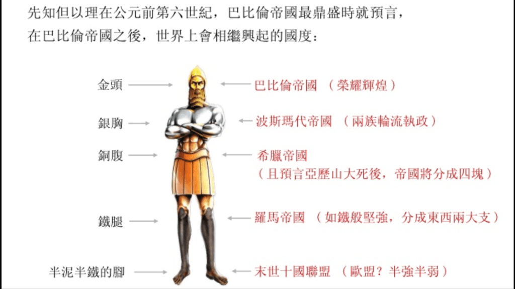 【但2:39】在你以后必另兴一国,不及于你。又有第三国,就是铜的,必掌管天下。