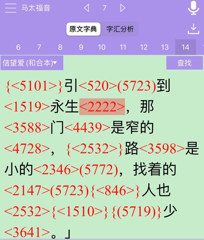 【太7:14】引到永生,那门是窄的,路是小的,找着的人也少。”