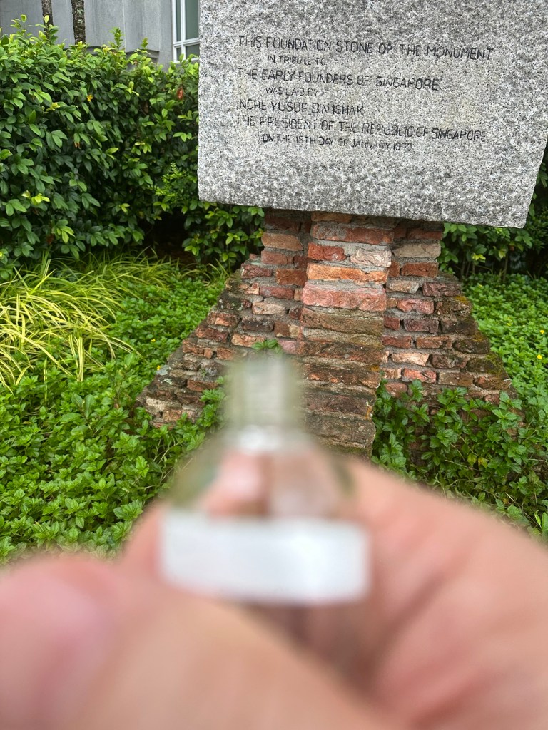 我去了“新加坡早期先贤纪念碑的奠基石”。它位于Fullerton酒店,这个纪念碑纪念了新加坡早期开拓者和创始人的贡献。奠基石于1923年奠定,纪念碑本身建造是为了尊敬那些在塑造新加坡早期历史和发展中发挥了关键作用的个人。该纪念碑是对他们的远见和努力工作的致敬,使新加坡成为一个繁荣的港口城市。