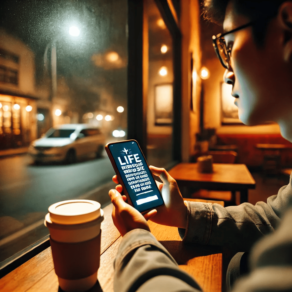 As night fell, Jae-En sat in the corner of a coffee shop, his fingers swiftly tapping on his phone screen. His heart raced because time was running out.
